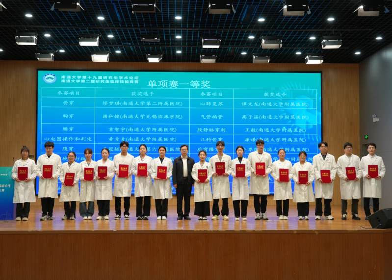 本次竞赛共有来自学校各附属医院及教学医院的10支代表队参赛。竞赛涵盖基础临床操作和专项技能、临床急救技能团体赛、病例演讲比赛等18项竞赛项目,全面覆盖临床医学从基础操作到综合应用的全链条能力考核需求。经过激烈角逐,我校南通大学附属无锡临床学院代表队斩获团体一等奖,南通大学附属医院、南通大学第六附属医院代表队获团体二等奖,南通大学附属江阴医院、南通大学第二附属医院、南通大学附属常州儿童医院代表队获团体三等奖;缪梦琪等17人获单项一等奖,殷梓欣等37人获单项二等奖,杨雨等51人获单项三等奖。