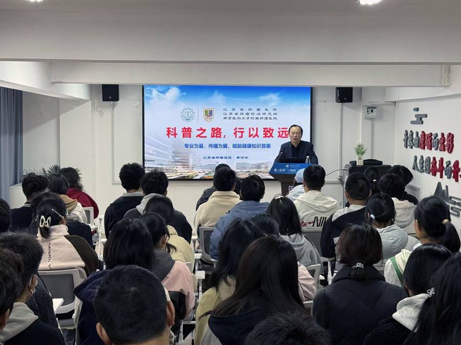 医学影像学1995级杰出校友、江苏省健康产业研究会副会长、南通大学校友会南京分会副会长兼秘书长季明华以《如何做好医学健康科普》为题作专题分享。他首先阐明医学科普的核心价值是连接专业医疗与公众健康的关键纽带,它既是提升全民健康素养、减少认知误区的重要抓手,更是“健康中国”战略落地的社会支撑。随后,他结合行业趋势解读2025年“十大”科普热词,呈现我国科普聚焦前沿、贴近民生的发展现状,同时指出精准传播、形式创新等提升方向。他结合《“健康中国2030”规划纲要》与《科普法》明确科普使命,以科普“五千万”精神激励学子深耕领域、守护公众健康。活动现场氛围热烈,与会学生全程专注聆听、认真记录。