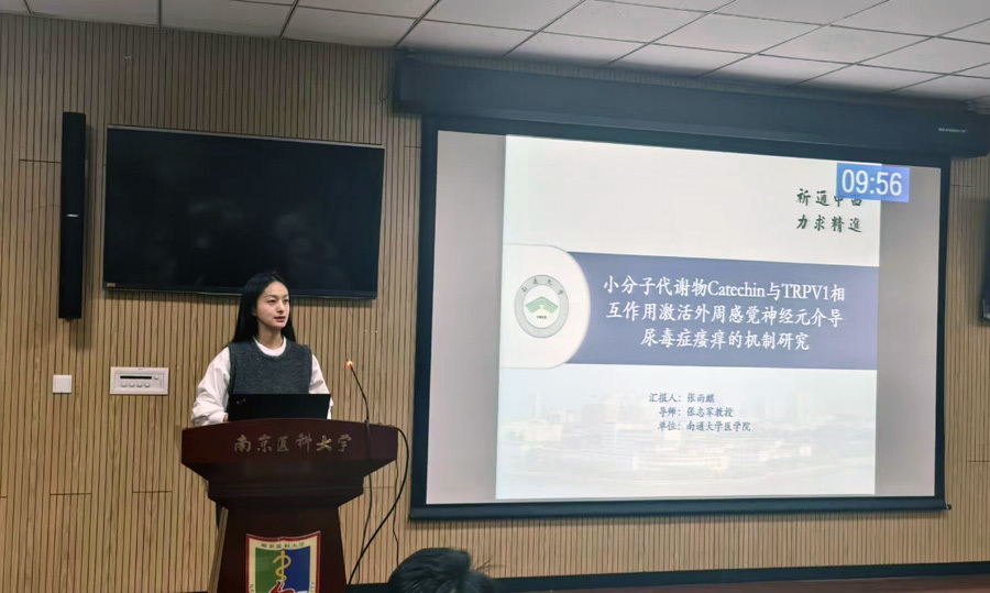 论坛吸引了来自南京大学、东南大学、苏州大学、南通大学、江南大学、中国药科大学、南京师范大学、南京邮电大学、南京农业大学、南京中医药大学、徐州医科大学、扬州大学、江苏海洋大学以及南京医科大学等14所高校研究生投稿,省内高校约200名师生代表参加了此次活动。我院2023级基础医学人体解剖学专业硕士研究生张雨麒凭借扎实的工作与出色的现场表现脱颖而出,获硕士生组一等奖,汇报的课题源于其导师张志军教授的国家自然科学基金面上项目《小分子代谢物Catechin与TRPV1相互作用激活外周感觉神经元介导尿毒症瘙痒的机制研究》。